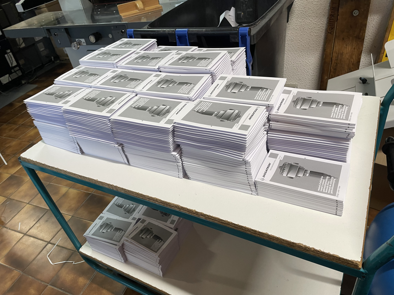 je devais couper les bord perdu et les mettre sous filme et les emballés avec le poids, le nombre de livret (1000) dans le cartons et le nom du client