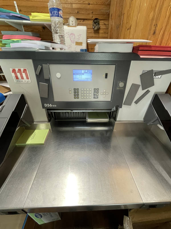 cette machine sert a coupé les bords perdu, on fais les 3 ou 2 mesures du livre et après on coupe